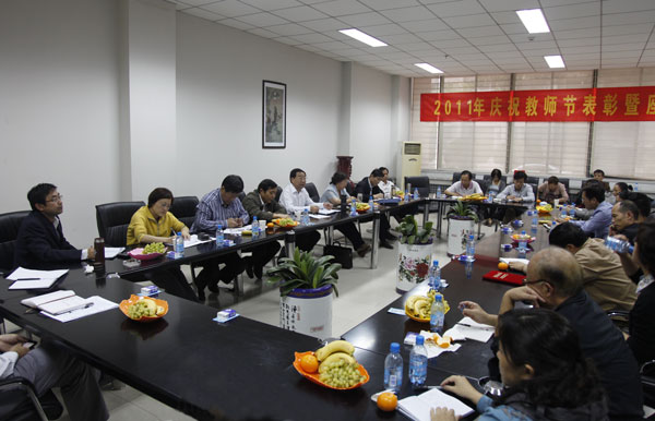 与会教师代表围绕今年“忠诚于党的教育事业、落实教育规划纲要”教师节主题先后发言。代表们结合个人人生经历及从教体会,畅谈身为教师的辛苦、幸福和责任;表达了为国家教育教学改革取得的喜人成果以及学校校园面貌、工作环境、教学、科研、人才队伍建设和学科建设等方面取得的喜人成绩感到无比自豪。与会代表交流了师德师风建设、提高业务能力、增强爱校爱岗意识等方面的经验和体会,决心继续发扬教师为人师表、爱岗敬业精神,立足岗位,争先创优,为我校的建设与发展做出自己的贡献。座谈会会场始终充满和谐、热烈与喜悦的氛围。