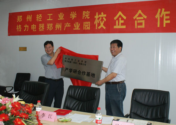 日前,我校与格力电器(郑州)有限公司产学研合作基地揭牌仪式在郑州市高新技术开发区隆重举行。副校长龚毅与格力电器(郑州)有限公司总经理许勇出席仪式并为产学研合作基地揭牌。我校相关职能部门和院系负责人与格力电器(郑州)有限公司部分管理人员参加了揭牌仪式。