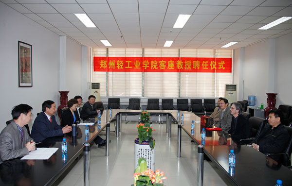 约翰・威利教授表示,对受聘为郑州轻工业学院客座教授感到非常荣幸,并将不遗余力地为促进双方的合作与发展做出应有的贡献。