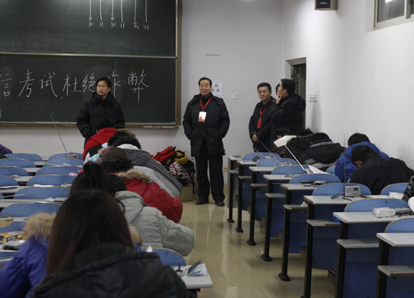 期末考试考验着学风和考风状况,考验着学校的教学管理工作水平以及每一位学生的诚信度,学校历来高度重视。第一场考试,监巡考工作人员按时到位,认真履行工作职责;绝大部分学生能够提前到达考场,在监考老师组织下,按次序就坐。总体来看,监考安排科学合理,整个考试平稳有序进行。