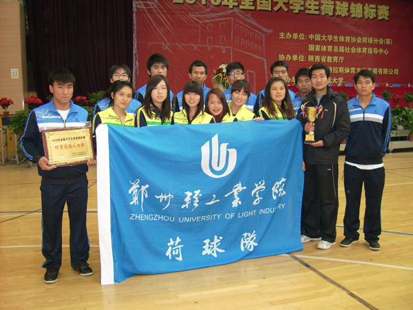 12月1日-7日,2010年全国大学生荷球锦标赛在陕西科技大学举行。我校荷球代表队取得了大学生乙组第二名和体育道德风尚奖的优异成绩。 比赛中,我校荷球代表队全体队员努力拼搏,发挥了较高水平,充分展现了我校学生良好的运动风采和精神面貌。