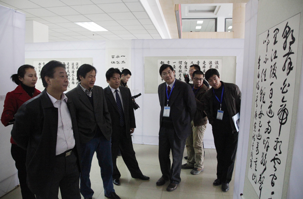 评估专家参观师生书法、绘画、摄影展