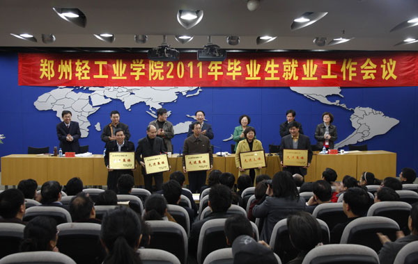 与会校领导为2010年毕业生就业工作先进单位颁发奖牌
