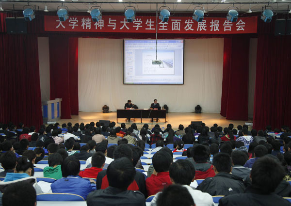 10月28日下午,党委书记林世选教授在科学校区做了一场题为“大学精神与大学生全面发展”的报告。科学校区全体辅导员与2010级500余名同学一起聆听了林书记的报告。报告会由副校长安士伟主持。