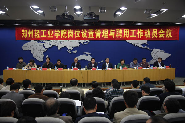 副校长赵继红宣读了《关于印发<郑州轻工业学院岗位管理与聘用工作方案>的通知》、《关于成立郑州轻工业学院岗位管理与聘用工作组织机构的通知》,对学校岗位管理与聘用工作进行了具体部署。