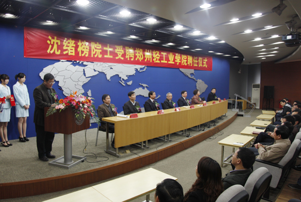 沈绪榜院士在聘任仪式上发言,表示很高兴受聘郑州轻工业学院。他认为,近年来郑州轻院在学科建设、人才队伍建设、人才培养和科学研究等方面取得了很大成绩。他表示,今后将尽自己的一份力量,与团队其他成员一起为学校的科研和学科建设做出贡献。