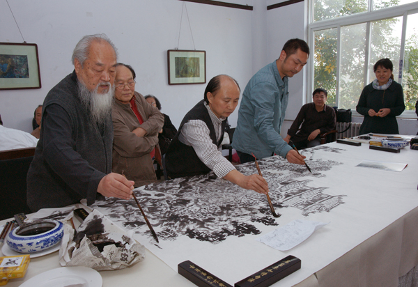 21日下午,出席庆典活动的丁中一、李明、王威、刘杰等20余位省内外著名书画名师大家,欣然参加了“十年院庆名师笔会”活动,名师们挥毫泼墨、或书或绘,为易斯顿美术学院十年院庆增色不少。