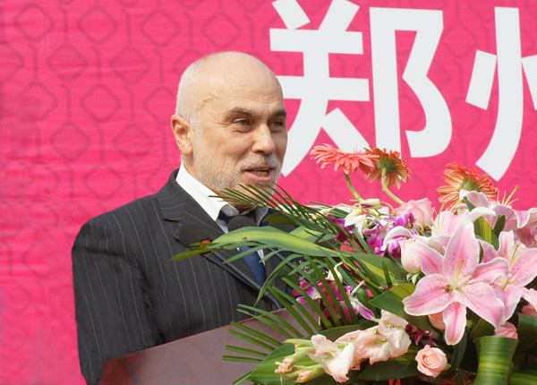 校长剧乂文在庆典大会上致辞。剧校长代表学校向莅临大会的各位领导嘉宾表示热烈欢迎,并向多年来关心支持易斯顿美术学院建设发展的各界朋友致以诚挚的感谢。剧校长指出,十年来,易斯顿美术学院解放思想、锐意进取,先后与俄罗斯苏里科夫美术学院、德国柏林艺术大学等国外艺术类高校在人才培养、科研合作等方面开展合作交流,近百名学生在“河南之星”等艺术设计大赛中获奖,培养出了一大批艺术类专业人才,为国家和河南省文化产业的发展提供了有力的人才支撑。剧校长强调,易斯顿十年来的发展历程已经充分证明,郑州轻工业学院与易斯顿美术学院的合作,是一种有益的探索和成功的实践。剧校长希望易斯顿美术学院继承优良的办学传统,加强文化内涵及制度建设,深化教育教学改革,在文化大发展大繁荣的时代潮流中,以更加广阔的视野、更加开放的姿态、更加执著的努力,谱写崭新的发展篇章。