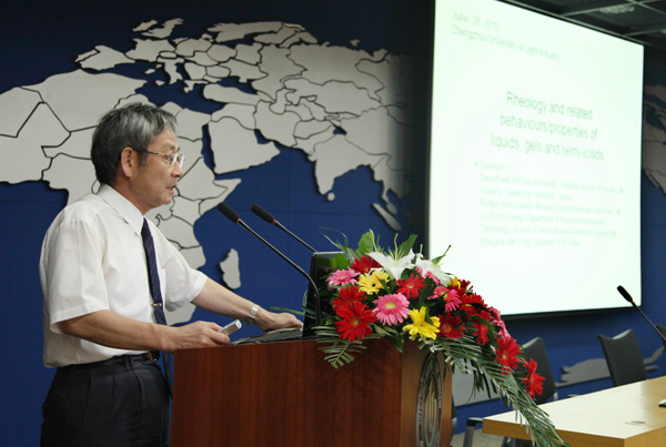 6月26-30日,日本大阪市立大学西成胜好教授对我校进行友好访问。访问期间,西成胜好教授做了题为“液体、胶体及半固体的流变和相关特性研究”(Rheology and related behaviours/properties of liquids, gels and semi-solids)的学术报告,相关专业教师和学生200余人聆听了报告。