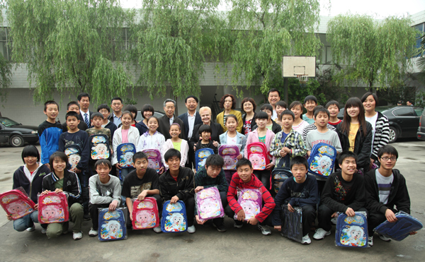 为表达对孩子们的关心,剧校长代表学校向福利院捐赠图书260册,并向每个孩子赠送了新书包。