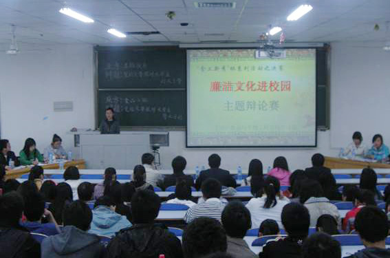 食品与生物工程学院团组织积极响应上级关于推进“廉洁文化进校园”的有关要求,及时开展辩论赛等倡导廉洁文化的主题活动,不仅传播了廉洁文化,培养了青年学生正确的价值观和高尚的道德情操,而且锻炼了同学们的口才,加深了同学们对现实社会问题思考的深度。同时,辩论赛对于激发同学间思想的交流、沟通、碰撞,促进校园文化的建设发展都有着重要的意义。