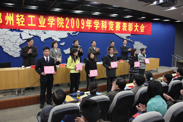 4月1日下午,学校在图书馆报告厅隆重召开了2009年学科竞赛总结表彰大会,对在2009年学科竞赛活动中取得优异成绩的教学单位、指导教师、参赛学生进行了表彰。校长剧乂文,副校长陈江风、吕彦力、赵继红出席会议,研究生处、科技处、设备处、图书馆、现教中心负责人,各教学单位院长(主任)、教学副院长(副主任)、副书记,教务处、学生处、团委科级以上干部,教研室主任、实验室主任、各类学科竞赛指导教师、获奖学生代表共计250余人参加了会议。会议由副校长赵继红主持。