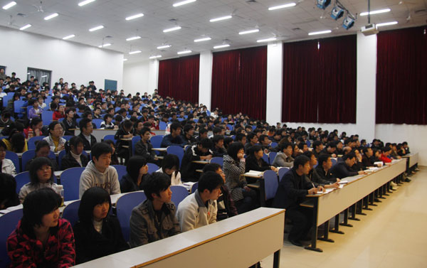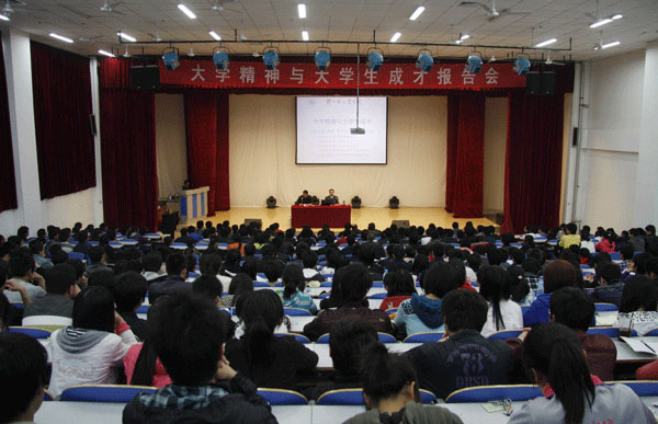 林书记结合我校科学校区建设发展的喜人形势,就“现代大学的责任与使命”、“当代中国的大学精神”、“当代大学生所面临的人生挑战”和“当代大学生的成才要素”等同学们关注的问题进行了深入浅出的阐释。