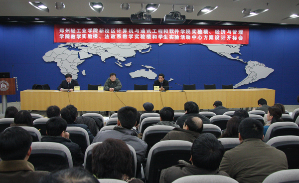 1月26日,我校在东风校区图书馆报告厅举行科学校区计算机与通讯工程和软件学院实验楼、经济与管理学院教学实验楼、法政系教学实验楼和学生实验活动中心方案设计招标开标会议。河南省发展改革委员会有关领导,学校领导剧乂文、张胜利、龚毅、陈江风、吕彦力、赵继红、安士伟出席会议。相关院系、部门负责同志及教师代表参加会议并观看投标单位的设计方案说明短片。副校长龚毅主持会议。