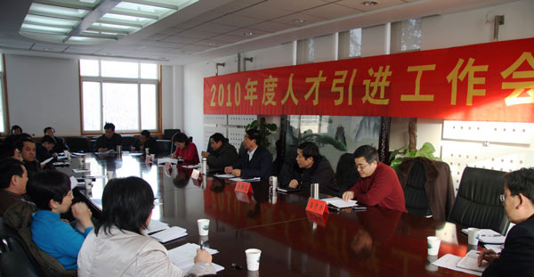 会上,人事处处长师宝山通报了2009年度学校人才引进计划的执行情况。副校长赵继红对2010年度人才引进计划方案的制定情况进行了说明,并对2010年度人才引进工作做了具体部署。副校长陈江风、吕彦力分别从本科教学和学科建设需要,对2010年度人才引进工作提出了要求。