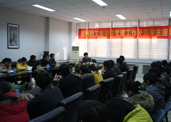 12月29日下午,河南省高校党建工作评估专家组成员王大力在图书馆第三会议室与59名来自不同院系的学生代表亲切座谈。 座谈会上,学生代表踊跃发言,分别从“学校思想政治课教学质量”、“学校共青团工作开展情况”、“学生会作用发挥的情况”、“学生党建工作开展情况”、“德育学分制的实施及其效果”等方面谈了自己对于学校党建工作的认识和体会,并回答了评估专家的有关提问。 座谈会结束后,评估专家对与会学生进行了问卷调查。