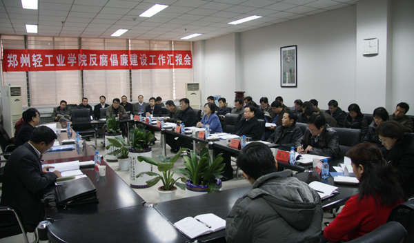 党委书记林世选就我校反腐倡廉建设情况向检查考核组进行了汇报。汇报分为五个部分:一是认真落实党风廉政建设责任制,积极构建反腐倡廉责任体系;二是充分发挥制度和机制的规范作用,不断提高管理和监督水平;三是突出思想教育的主渠道作用,不断加强廉政文化建设;四是坚持惩防并举,保持惩治腐败的强劲势头;五是以评促建,不断提高反腐倡廉建设整体水平。