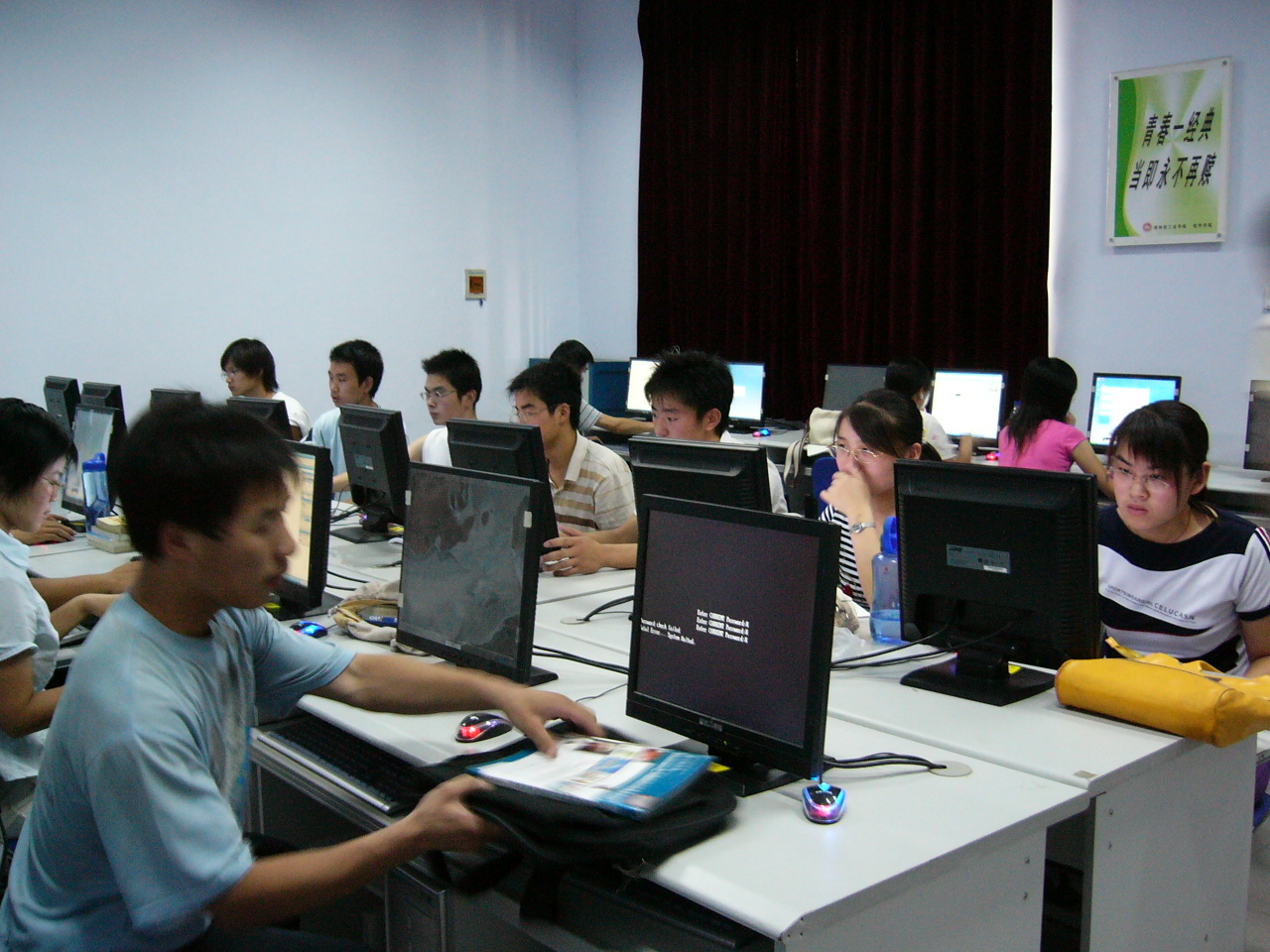 锻炼实践技能,培养综合就业素质,软件学院05级学生第二学期3周实训全面展开 为了锻炼学生的实践动手技能,培养学生的综合素质,实现零距离就业,按照培养计划,软件学院05级学生期末3周实训课程全面启动,为了做好此项工作,学院选派了20名经验丰富的优秀教师指导实训,从软件学院、计算机与通信工程学院网络实验室与计算机软件与应用实验室、计算中心共调配了近400台电脑,保证学生一人一机。实训共3周,每天8小时,这种集中安排的实训教学有利于学生在课程学习以后在实践动手技能方面有一个质的飞跃。 实训开始前,专门召开了实训动员大会,软件学院副院长邓璐娟教授对全体学生做了实训动员:邓老师从影响中国软件的20人谈到程序设计师;从程序员谈到项目架构师再到项目经理;从市场对软件人才的需求谈到大学应该怎样规划自己的学业路程;从优秀的2004级学生的今天谈到2005级学生的明天;从综合素质培养到零距离就业再到踏实钻研、刻苦认真、团队合作、好学创新精神的培养;从辛勤汗水的付出到成功的喜悦再到自信心的培养等多方面激励学生,祝学生在实训期间苦、累、并快乐着!