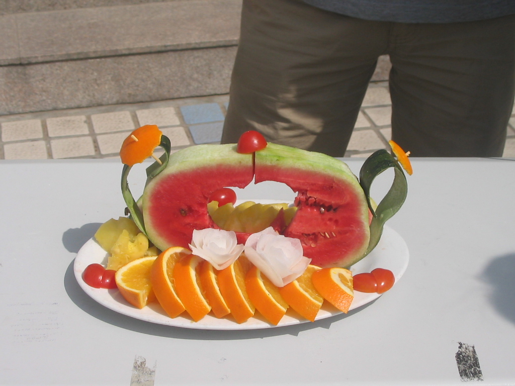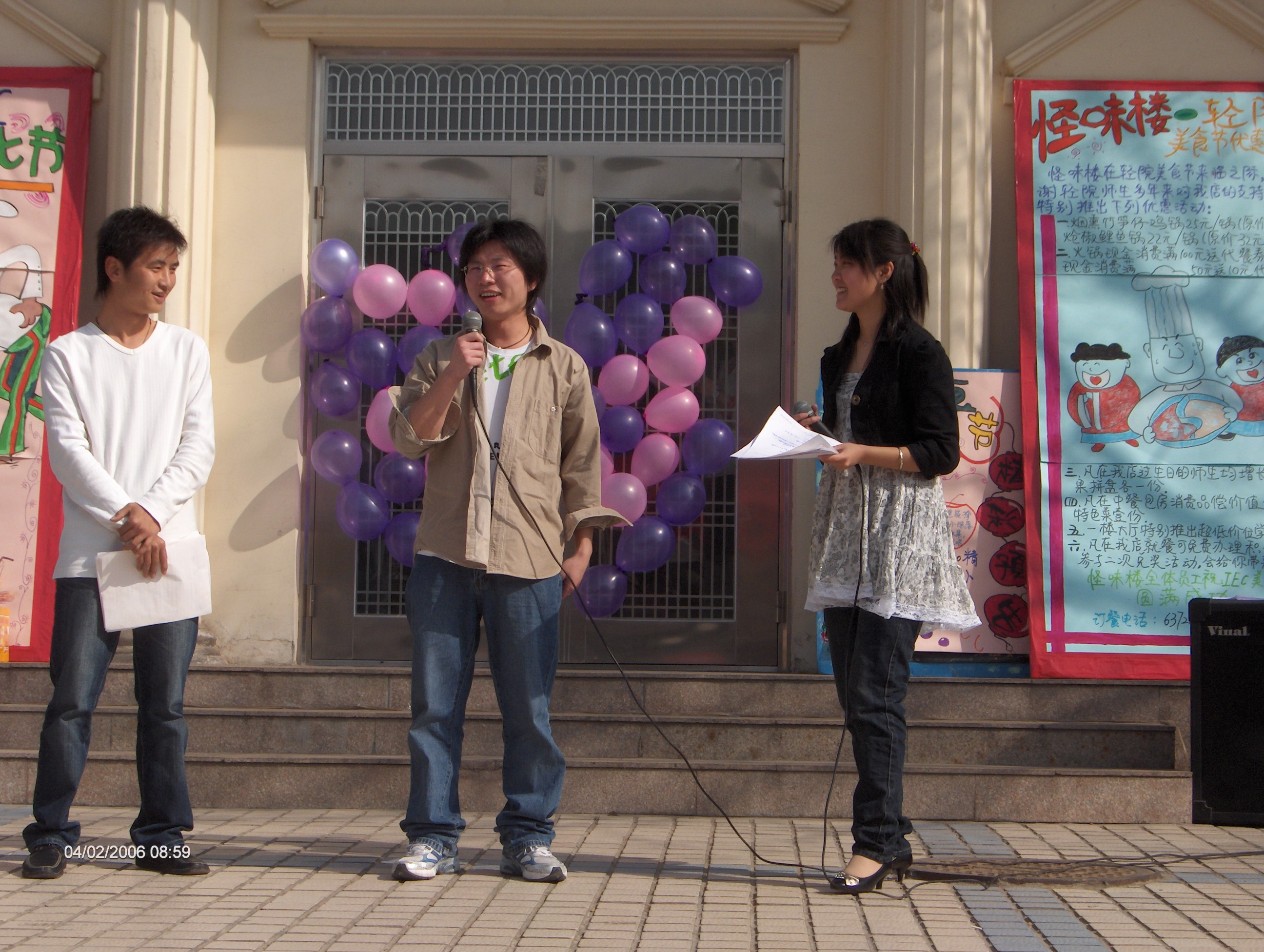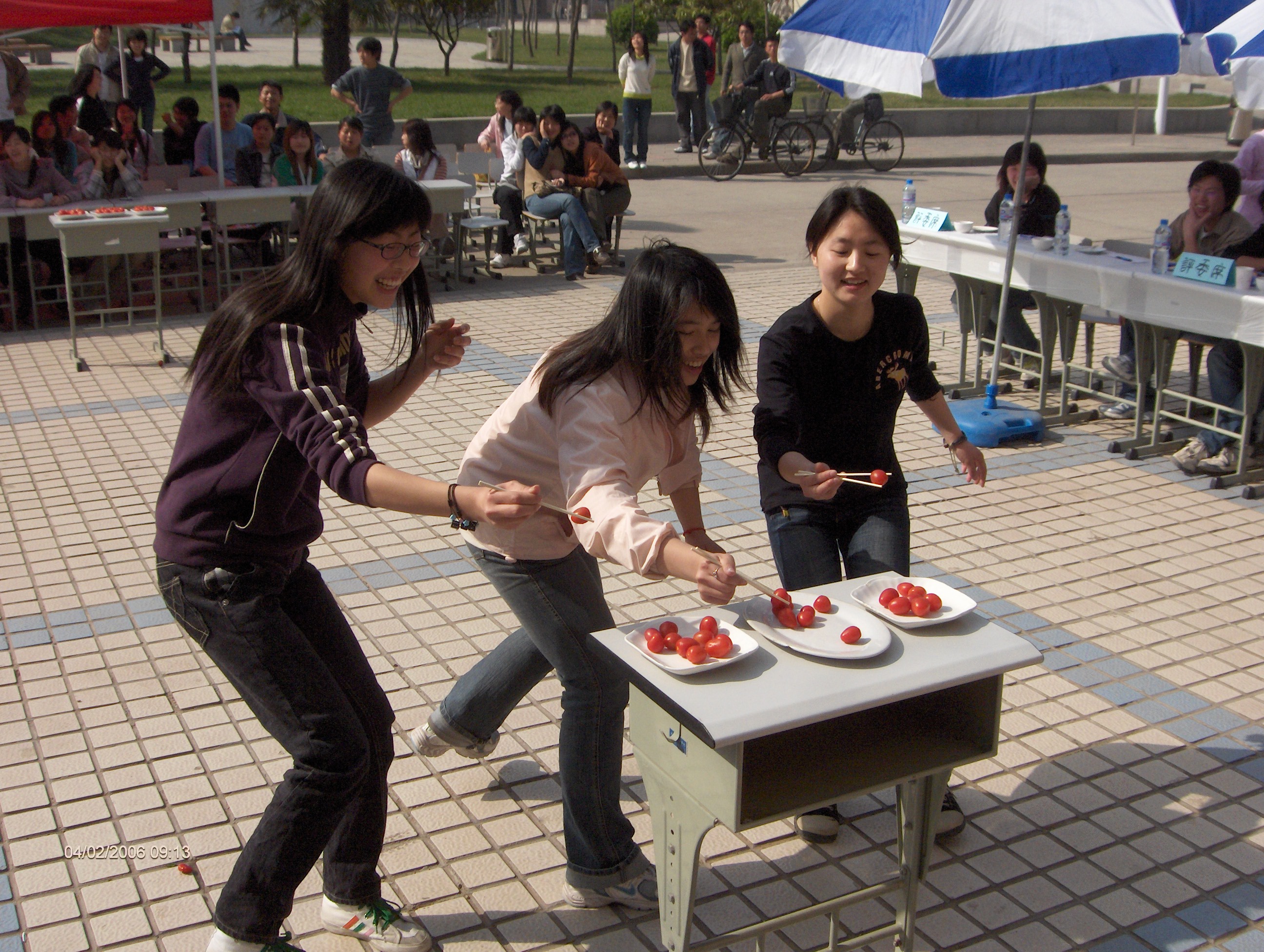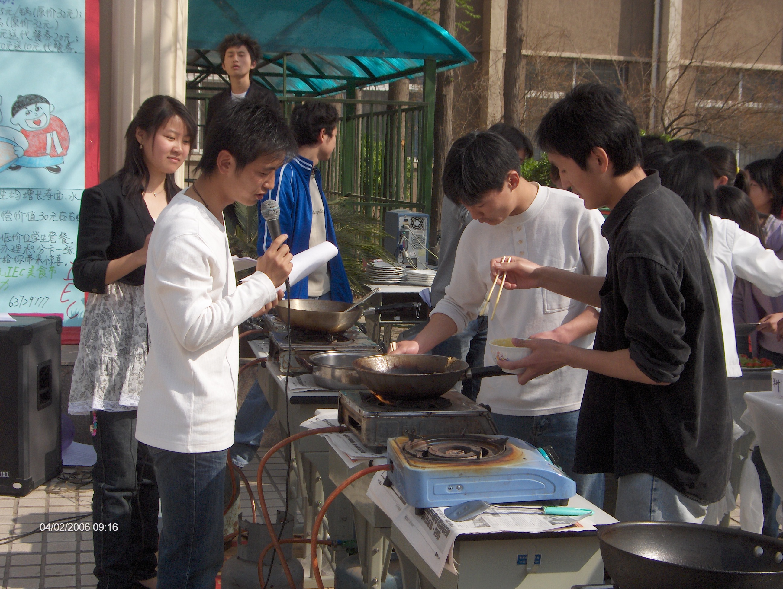 为了丰富同学们的业余文化生活, 锻炼大家的独立生活能力,为出国留学做好准备,国际教育学院 “厨艺大赛”于2006年4月2日上午,在国教门前小广场举行。此次比赛由我院学生会生活部主办,24支参赛队伍由各年级同学们自由组成,比赛分为“厨艺大比拼”和“水果拼盘”两个部分。 在比赛过程中同学们各施所长展现自己的“绝活”,不仅菜名“别具一格”,做出的菜品更可谓是“色、香、味”俱全;做水果拼盘的同学也是花样迭出,毫不逊色,像“夏威夷风情”、“凤凰涅盘”等都获得了在场观众的喝彩。在比赛中还穿插着一些趣味小游戏及对生活小常识的介绍,为节目增色不少。
