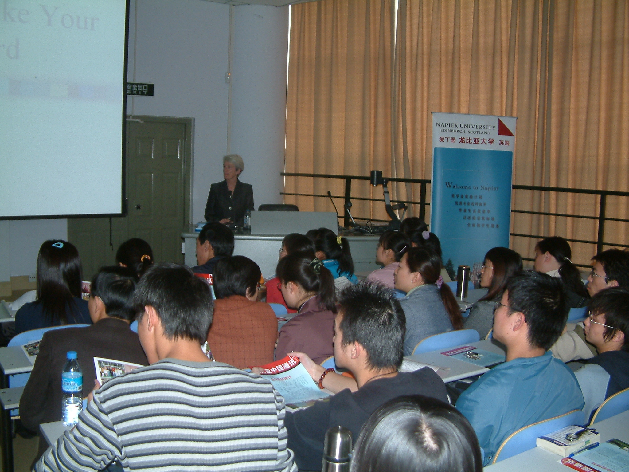 2005年11月10日下午3:30-5:00,英国文教专家Sue Kay女士应国际教育学院和龙比亚大学的邀请在郑州轻工业学院教三楼200教室举办了‘Make your voice heard ’专题讲座。