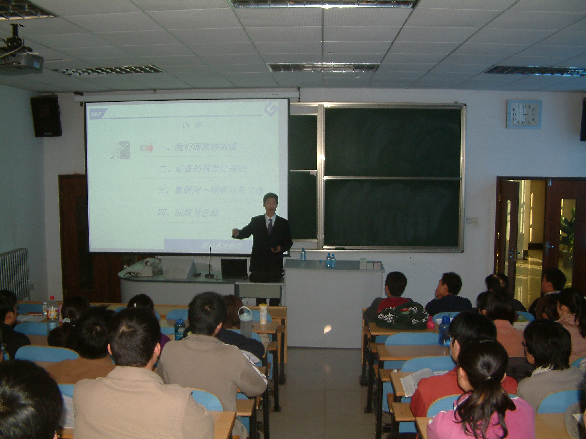 此次讲座张总对企业人员所必备的信息化知识作了系统的介绍,并抓住大学生就业心理,对就业实况进行了详细的分析和讲解,使同学们认识到了解准确、及时的信息对于就业的重要性。他以幽默的演讲方式吸引了在座的每一位同学,整个讲座掌声不断。演讲结束后,张总逐一解答了在场同学提出的问题,真正为大学毕业生搭建了一座通向就业的桥梁。