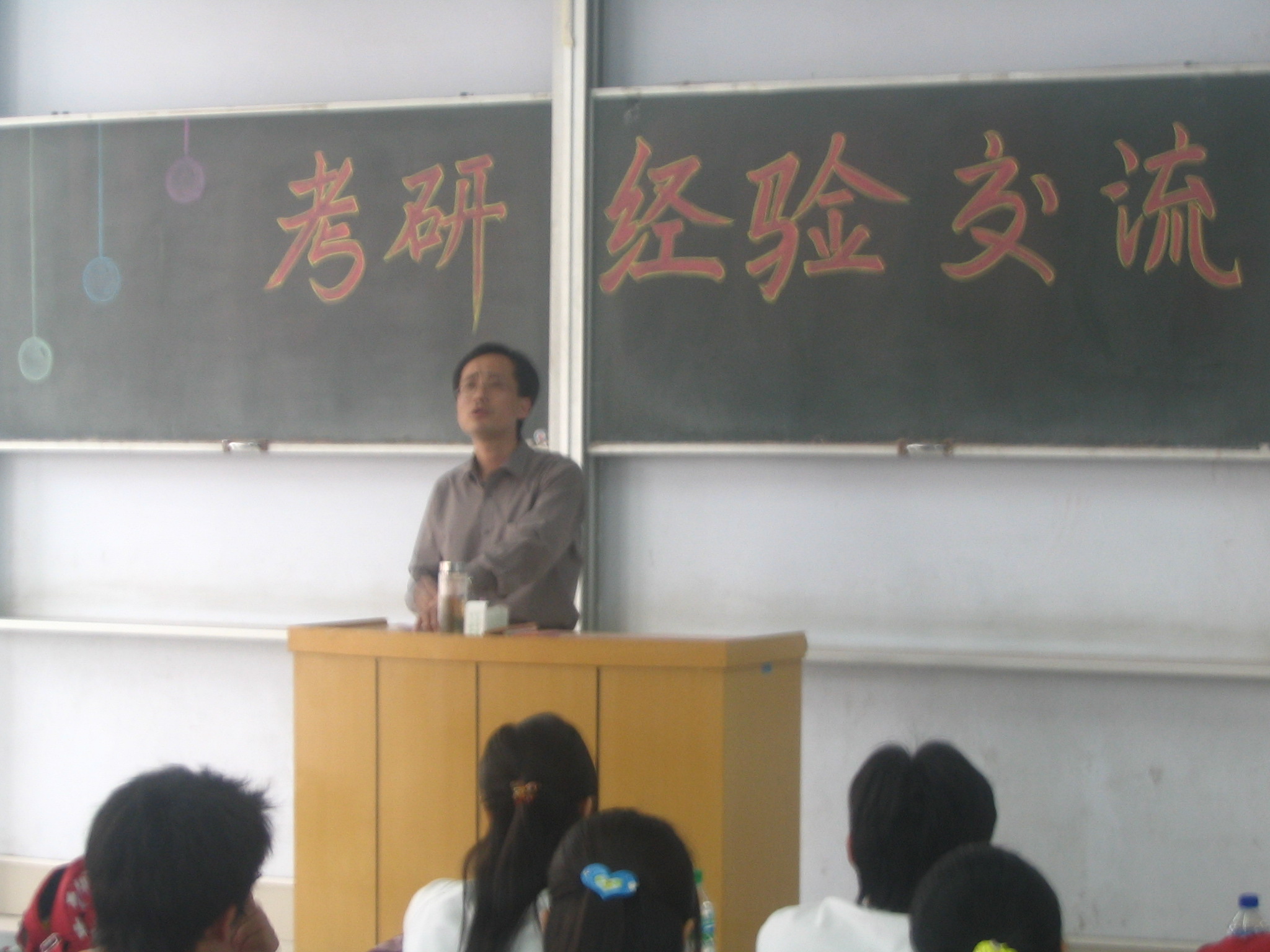 最后,许院长总结了我二级学院近年的考研情况,并做了深入的分析和比较,勉励大家再接再厉,据自己的多年的工作经验,针对考研中常见的问题做了详细的说明和积极动员,力争2007年研究生考试有更大的突破,为学校的学风做出贡献,为自己的前程做出努力。