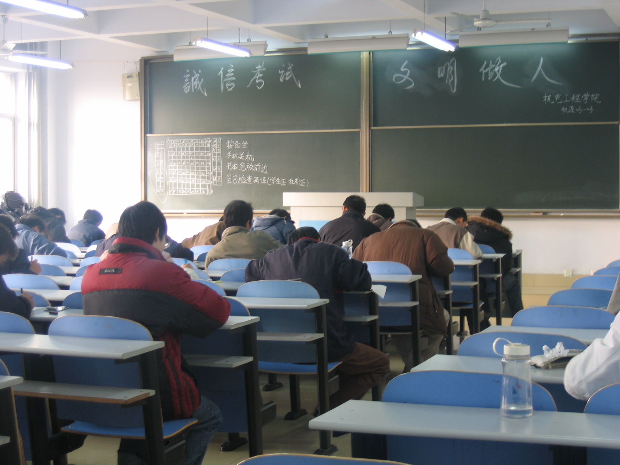 今天是我校05-06学年第一学期期末考试正式开始的第一天。机电工程学院学生发扬评估期间团结勤奋、紧张有序的精神,积极投入到期末考试当中。参加今天考试的05级、04级、03级学生各考场井然有序。