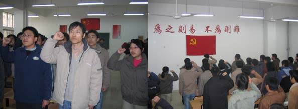 机电工程学院广大毕业生积极响应团委号召,投身于纪念“一二・九”运动70周年系列活动中。2005年12月8日12月8日中午13:30,机电工程学院毕业班学生党员在西三楼215教室集合,举行重温入党誓词活动,毕业班学生党员及入党积极分子100余人以这种特殊的方式怀念革命先烈,表达报国志向!