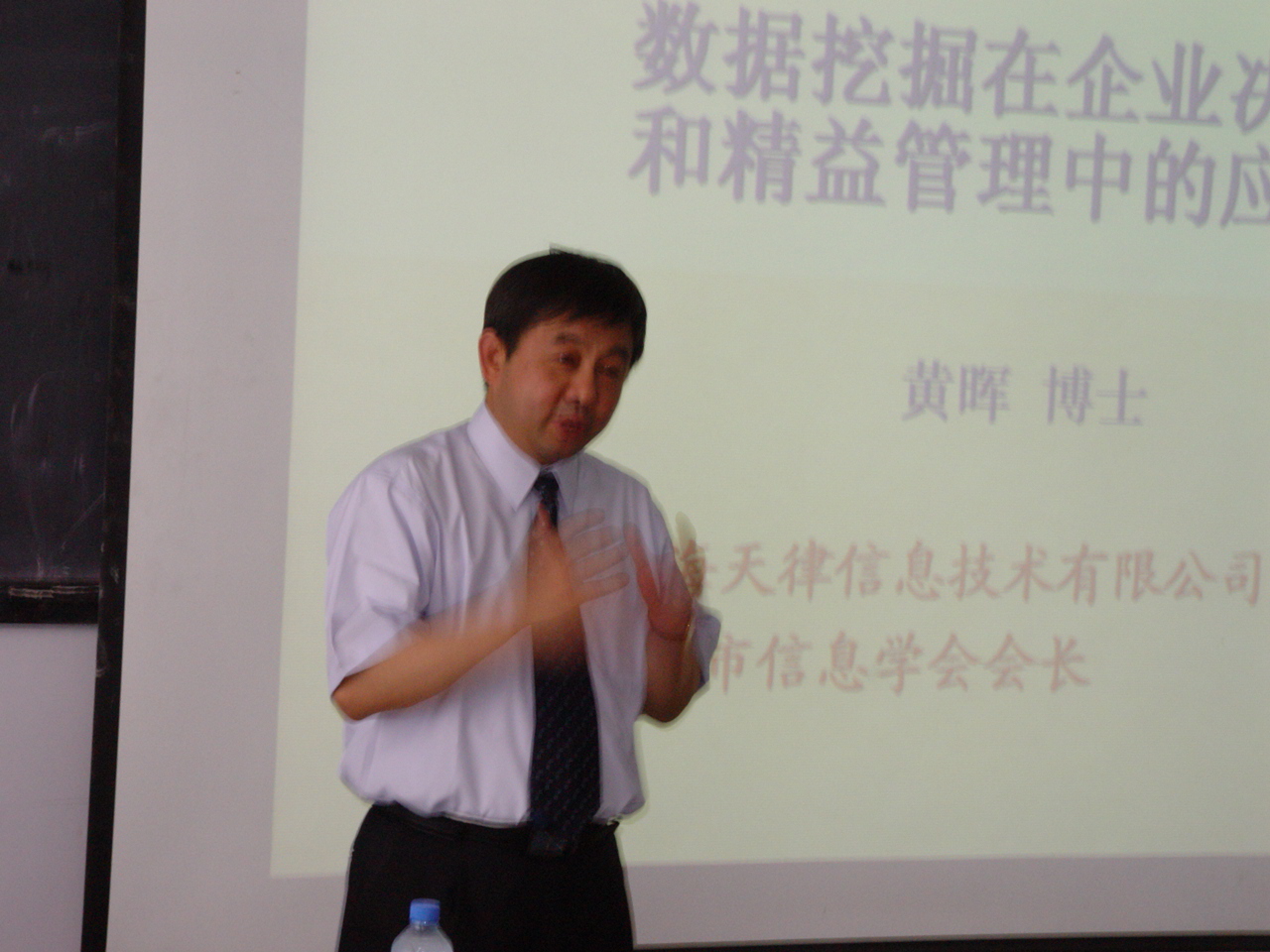 2006年6月16日(星期五)下午3:30,应邀来到我校的美国陆汶大学终身教授、美国资深数据挖掘咨询顾问,现任上海信息学会会长的黄辉博士为我院师生作了一场精彩的学术报告。黄辉博士早年曾任教清华大学、从师于许国璋教授读外语博士,89年赴美国北卡罗莱纳大学读社会统计专业,获博士学位,任美国鲁汶大学终身教授,长期担任美国政府和多家企业数据挖掘咨询顾问,在数据挖掘和数据分析方面有很高的造诣。本次学术报告黄辉博士就数据挖掘的发展和应用、自己研制的马克威数据挖掘分析软件和技术作了精彩的报告。会后就学生的提问,黄博士也给于热情地回答。在场的研究生、毕业班学生认为收到一场专业教育,受益非浅。