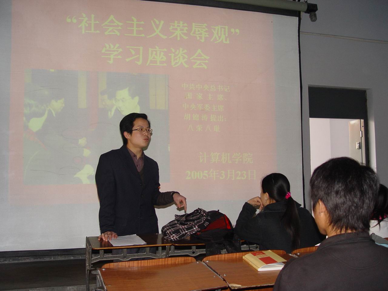 计算机与通信工程学院响应团委号召,近日利用党员团干座谈会、班级班会等形式,积极组织广大党员、入党积极分子、团干、团员进行社会主义荣辱观教育,牢记“八个为荣,八个为耻”。