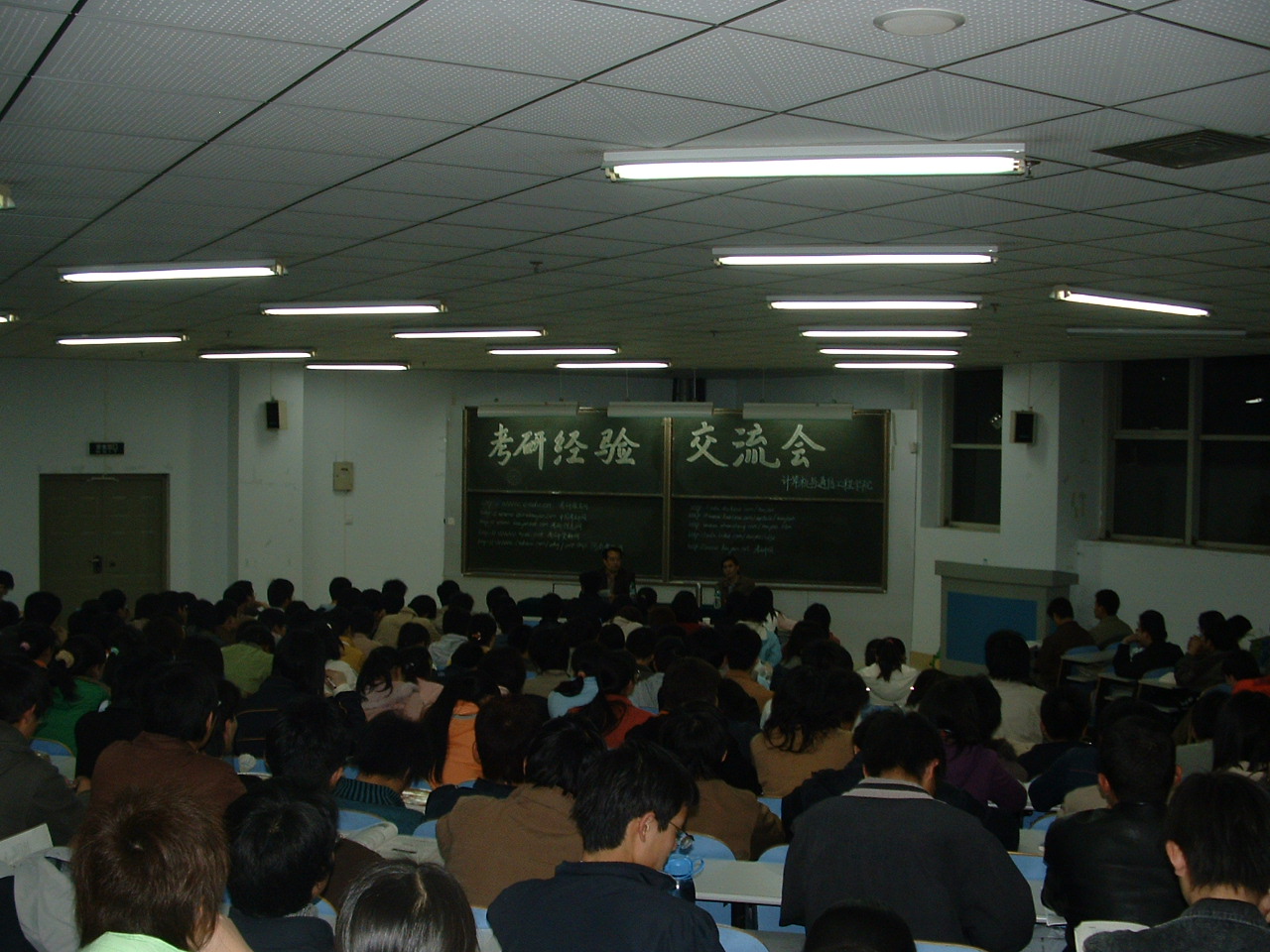 交流会上,张素智老师详细分析了中国当前的考研形势和计算机学院具体的考研情况,动员大家认清形势,坚定决心积极备考。金保华老师语言幽默,举例精辟对考研的具体学习情况和备考复习方法作了详细介绍。参加会议的广大同学反应受益匪浅,高年级同学坚定了考研的信心,低年级同学树立了奋斗目标。最后,师生互动答疑环节,会场气氛活跃,金老师针对同学们的困惑和困难耐心解答。