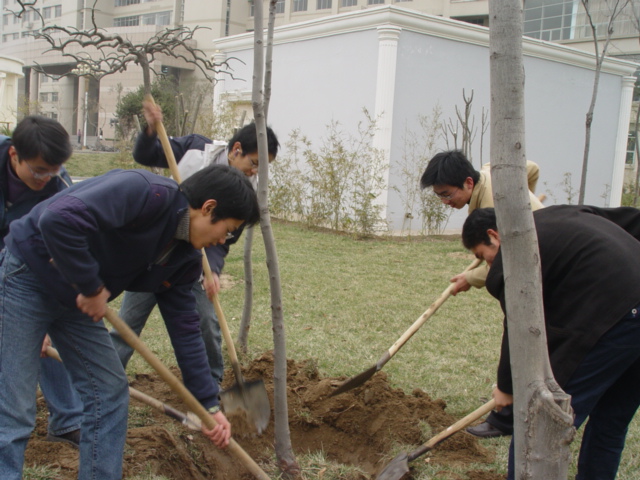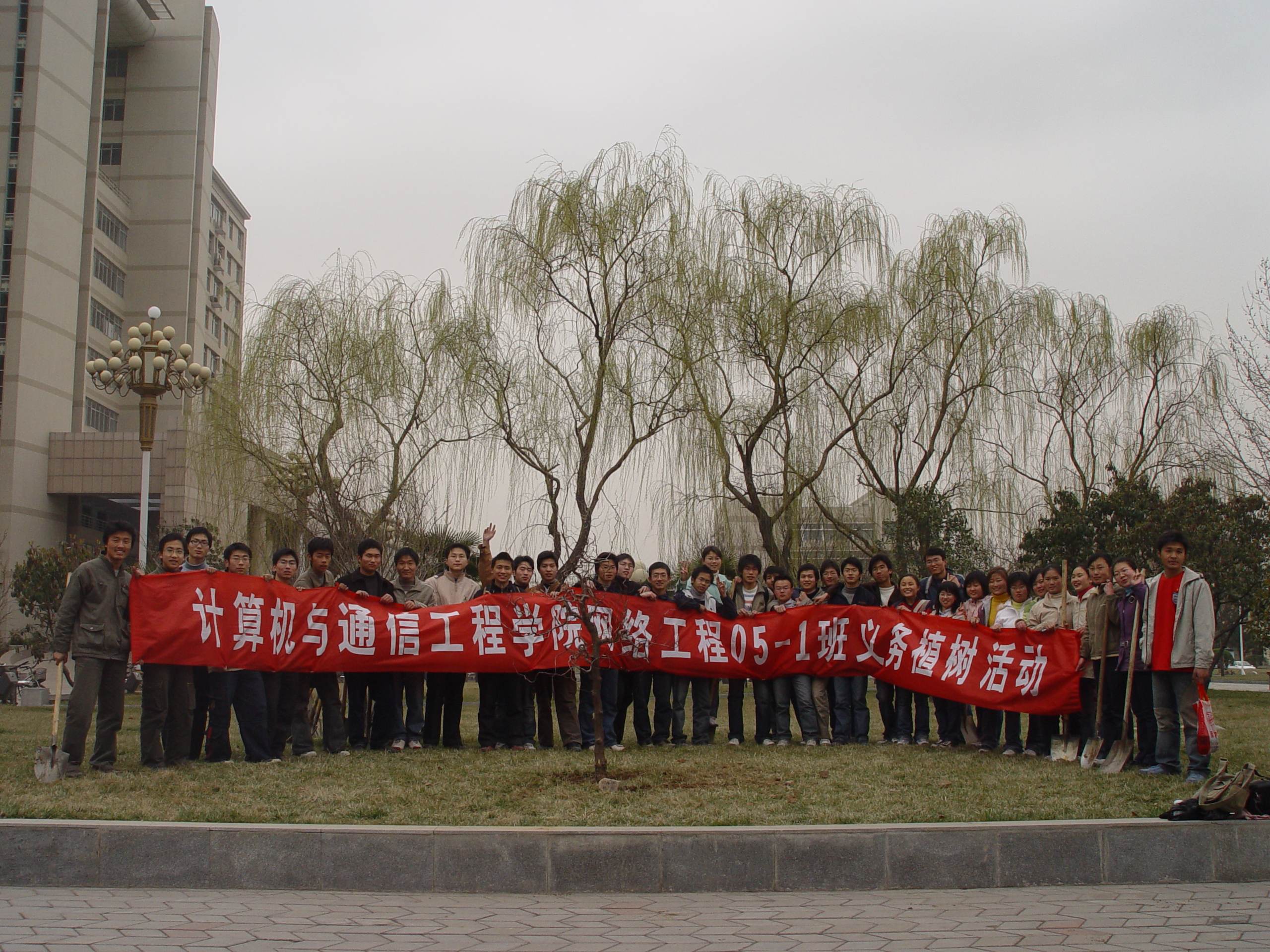 在第28个植树节到来之际,为绿化环境、美化校园,计算机与通信工程学院网络工程05-1班全体同学在学校春华园开展了校园义务植树活动。此次活动得到了后勤集团和学院的大力支持,他们为此提供了植树场地、树苗、工具,并且请来了专业的园林师傅进行指导和监督。 这次活动使同学们用实际行动诠释了“美化校园,爱我轻院”,大家纷纷表示以后要用自己的言行来净化、美化我们的校园,为建设良好的学习、生活环境做贡献。