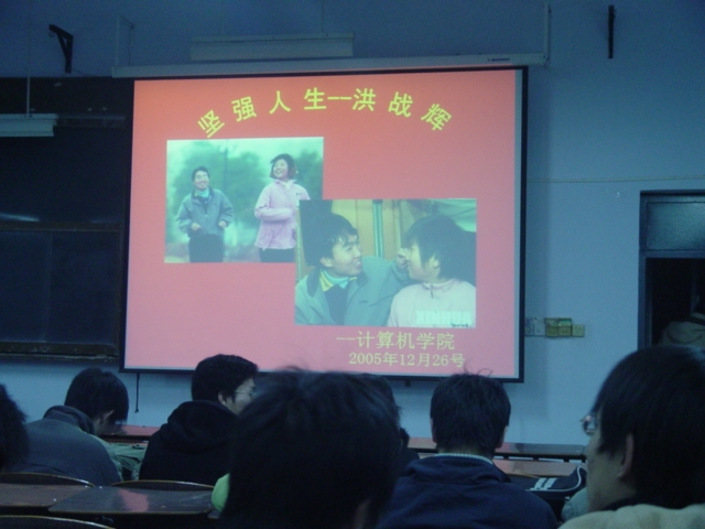 2005年12月27日,计算机学院积极组织了“坚强人生-洪战辉”座谈会。 洪战辉的仁爱之心,作事的责任感,无忧无惧、不卑不亢、自强不息的个人修养,足以承担一个时代‘道德英雄’偶像的称号。他的事迹体现了中华民族的传统美德,展示了当代大学生的崭新精神风貌,是当代大学生的优秀代表和先进典型。 这次主题座谈会在广大同学中引起了积极反响。同学们纷纷表示要认真学习洪战辉自强自立、积极进取的精神,勇于承担报效祖国、服务社会的神圣责任。