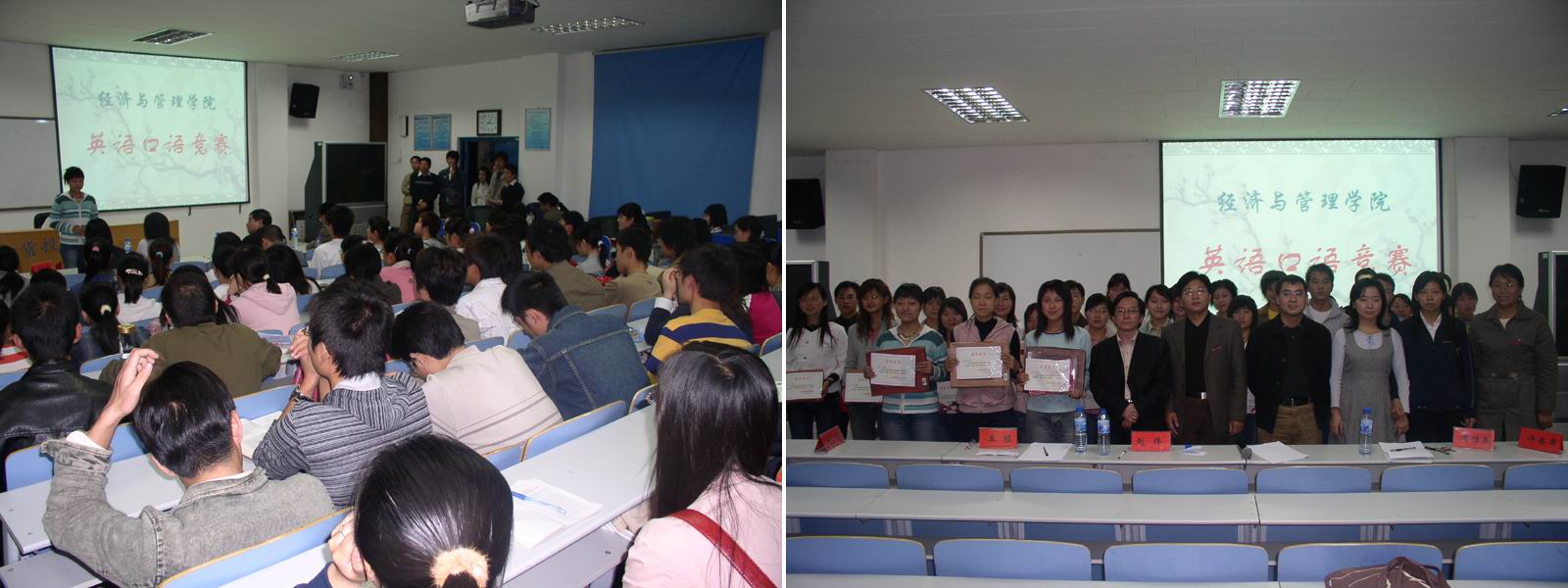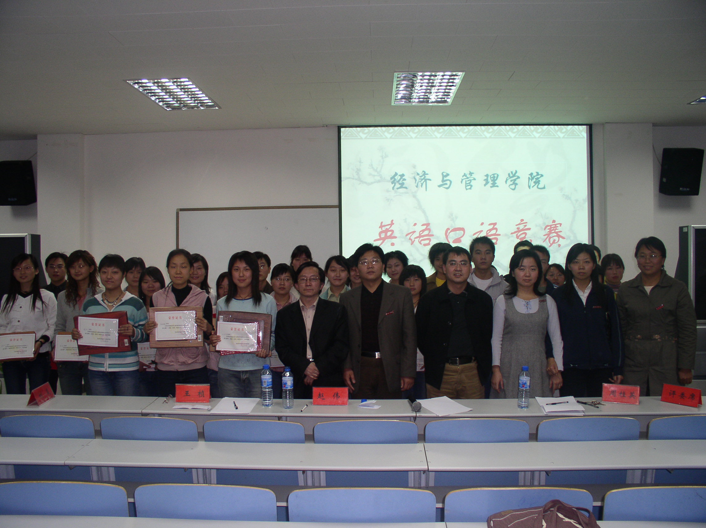 10月7日下午3:00,经济与管理学院在东一楼118举行了首届英语口语比赛,担任本次比赛的评委老师有:经济学系周桂英副教授、管理科学与工程系赵伟老师、会计学系王桢老师、经济学系刘炎老师。