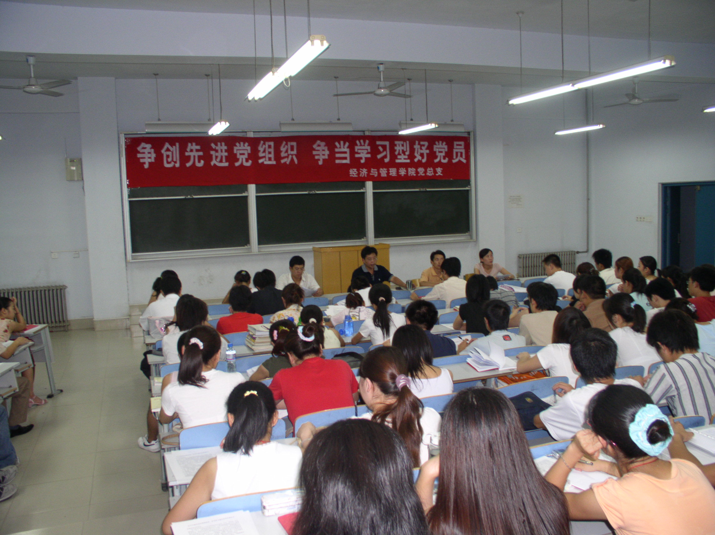 党总支副书记于善启老师对全体学生党员先进性教育学习进行了辅导,对学生党员的先进性教育活动进行了具体部署,对每个学生党员在不同阶段要完成的任务进行了详细的讲解。