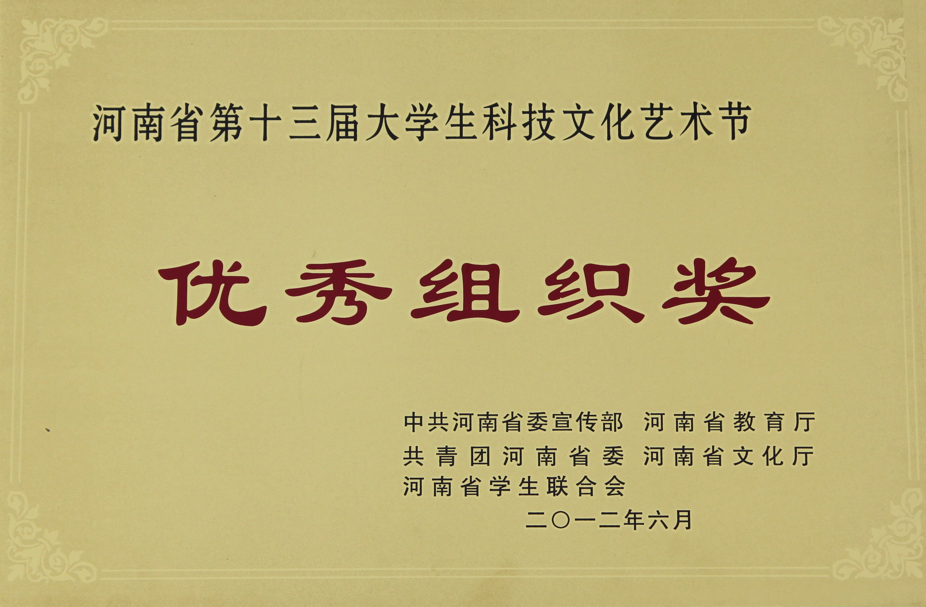 在校团委的精心组织安排下,我校大学生积极报名参加第十三届科技文化艺术节的各项比赛,现在已出成绩的13个项目中,我校代表队取得14项一等奖的好成绩,连续13年获得河南省大学生科技文化艺术节“优秀组织奖”。颁奖晚会"青春汇"节目精彩纷呈,我校大学生参加了9个节目中4个节目的表演和全部剧务工作,充分展示了我校大学生的表演水平、艺术素养和精神风貌。