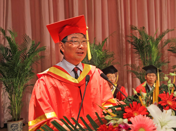 校学位评定委员会副主席、副校长陈江风教授宣读“关于授予白晓阳等5202名2012届本科毕业生学士学位的决定”和“关于授予郑万贺等93名2012届成人本科毕业生学士学位的决定”。