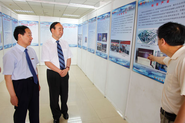 6月8日上午,我校优秀校友、省政协副主席邓永俭在参加完建校35周年庆祝大会之后,专门参观了正在举行的校庆科技成果展,并到材料与化学工程学院和设在该学院的河南省表界面科学重点实验室考察指导工作。党委书记、校长剧乂文,党委副书记窦效民,副校长安士伟等陪同考察。