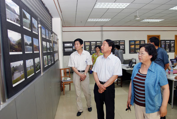 校领导剧乂文、张胜利、窦效民在党办、校办、宣传部、校工会等部门负责同志的陪同下观看展览。校领导饶有兴致的观看了展出的摄影作品,并不时就其中一些作品交流各自的看法和感受。参观完毕后,校领导对摄影展的成功举办表示祝贺,并充分肯定了展览对于丰富教职工文化生活、繁荣校园文化、推动和谐校园建设的积极作用。