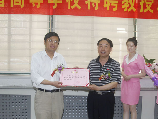 党委书记、校长剧乂文教授为黄德强教授颁发聘书