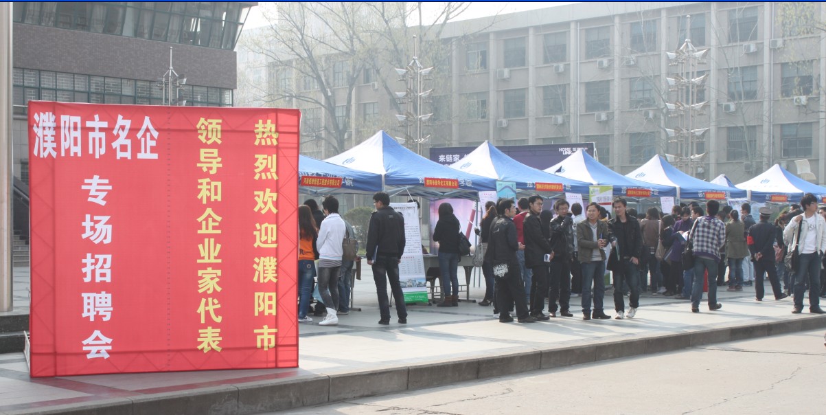 3月27日上午,濮阳市人力资源和社会保障局、濮阳市委人才办及濮阳市人才中心组织濮阳贝英数控机械设备有限公司、濮阳蔚林化工股份有限公司、河南新龙源电气科技开发有限公司等14家濮阳市企业到我校招聘毕业生,招聘会在图书馆广场举行。