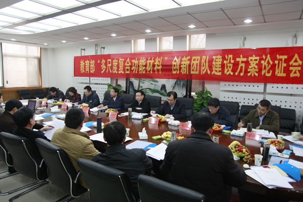 3月8日下午,学校在办公楼二楼会议室召开教育部“多尺度复合功能材料”创新团队建设方案论证会。省科技厅人才与国际合作处处长何守法、省教育厅科学技术处处长孔繁士,校领导林世选、剧乂文、龚毅、吕彦力、赵继红出席会议。相关职能部门、院系负责人和省级科技创新团队负责人以及该团队学术骨干参加会议。会议由副校长吕彦力主持。