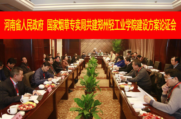 2012年3月7日下午,河南省人民政府国家烟草专卖局共建郑州轻工业学院建设方案论证会在郑州召开。省政府副秘书长介新、省发改委副主任陈永石、省教育厅副厅长訾新建、省科技厅党组书记黄布毅、省财政厅副厅长梁太祥、省烟草专卖局副局长王志富、国家烟草专卖局郑州烟草研究院院长闫亚明、省中烟工业有限责任公司副总经理杨志忠,郑州轻工业学院校领导林世选、剧乂文、张胜利、窦效民、吕彦力、赵继红、李世瑛出席会议。省发改委、省财政厅、省科技厅、省教育厅、省烟草专卖局、郑州烟草研究院、省中烟工业有限责任公司等有关处室领导和专家,郑州轻工业学院有关职能部门和院系负责人参加会议。