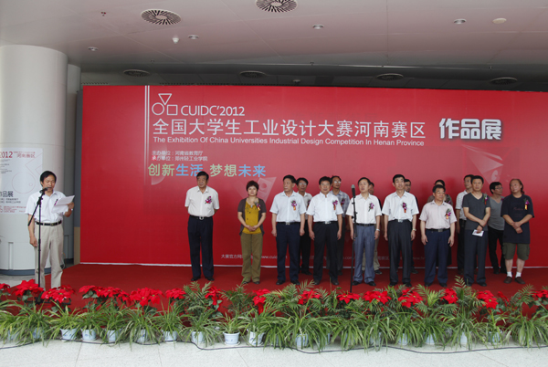 省教育厅高教处领导闫治国、2012全国大学生工业设计大赛河南赛区评委会主席姜冰教授、诺基亚中国研究员陈宪涛博士应邀出席开幕仪式,省内兄弟院校艺术设计方面的领导、专家、同仁也到会祝贺。党委副书记窦效民出席开幕式并致辞,副校长陈江风主持开幕式。全省参赛高校师生近400人参加开幕式并参观展览。