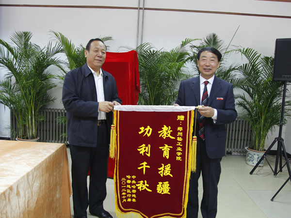 党委书记、校长剧乂文致欢迎辞。他代表学校向新疆哈密地区党政代表团,河南省发改委、人社厅、教育厅各位领导,河南省各培养院校的领队、辅导员表示热烈的欢迎,并向大家简要介绍了郑州轻工业学院近年来的建设发展成就。他指出,学校党委、行政高度重视新疆民政班学员培训工作,全校师生积极配合,全力为学员的学习生活提供必要的条件和服务。一年多以来,民政班各方面运行良好,学习培训已经取得阶段性成果。他期盼以代表团来访为契机,把郑州轻工业学院与新疆哈密地区建立的这份感情、缔结下的这份友谊,永远延续下去。他表示,在今后的工作中,将在省委、省政府的正确领导下,在新疆哈密地区党政领导的支持下,把培养少数民族基层骨干人才作为一项光荣的政治任务,加强和哈密地区的友好协作,进一步做好各项工作,为促进民族团结和民族地区的发展,为增进新疆和河南人民的友谊做出更大的贡献。