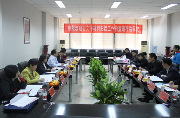 汇报会后,检查组成员对照检查办法分组实地查看了我校党群、行政、教学、科研、基建、设备、会计等各门类档案的收集、整理和加工情况,考察了档案用房及基础设施建设情况,详细了解了我校档案网络管理系统的建设和运行情况,并参观了学校的荣誉展厅。
