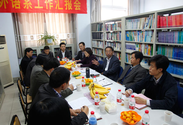 在外语系,陈文凯副主任从专业建设、科学研究与学科建设、师资队伍建设、党建思政以及学生工作等方面汇报了六年来取得的成绩,并结合外语系“十二五”规划,汇报了外语系学科专业定位、主要发展思路等。外语系领导班子成员、教授博士代表参加了调研会。