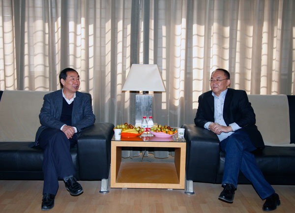 成立大会前,党委书记、校长剧乂文,党委副书记、纪委书记张胜利在图书馆贵宾室会见了民进河南省委邬恺夫副主委一行。