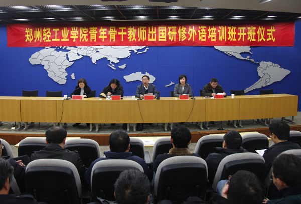 2012年12月29日上午,学校在图书馆学术报告厅隆重举行青年骨干教师出国研修项目第一期外语培训班开班仪式。党委书记、校长剧乂文,副校长陈江风、吕彦力、赵继红出席开班式。省教育厅国际交流与合作处副处长关煜平应邀出席并介绍国家公派出国有关情况。人事处、国际合作与交流处等部门负责人,各院(系、部)党总支书记、院长(主任)、办公室主任,培训班全体任课教师,全体参加培训青年教师以及各院(系、部)45岁以下青年教师代表参加了开班仪式。开班仪式由副校长赵继红主持。