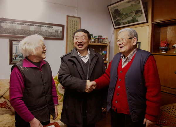 茶话会结束后,校领导剧乂文、张胜利、窦效民、龚毅、吕彦力、安士伟、李世瑛在相关职能部门负责人陪同下,分头走访慰问了部分离退休老同志,为他们送上了新春的祝福。